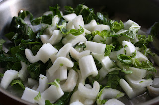 This is a favorite side dish in our house when we have Asian style dinners which are quite common around here lately. The only problem I find is getting fresh, crisp bok choy, they have it at the grocery store often, it's just usually wilted and a little floppy which I don't like. However I have asked the produce man at Publix and he has gone to the back and gotten me a fresher bunch. I almost always buy it when I see it looking good. It takes less than 5 minutes to prepare from start to finish and is loaded with nutrients! Honestly it is practically calorie free, I think it has 13 calories per serving and chock full of vitamins. If you want to read about it's health benefits, click here. I also love baby bok choy but have to go to a specialty grocery store for that so I hardly ever make it but you can always find regular bok choy at Publix or Kroger.